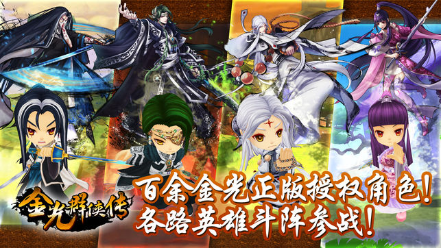 【金光世界完整重现,原创故事新滋味】 一直找不到拥有深度剧情的手机游戏吗?来自金光正版授权,让你完整体验原汁原味的金光世界,享受彷佛亲身经历的全新故事情节!此外还有专属主人公的原创隐藏剧情,让你化身其中,和群侠们一同进入迭宕多姿的万象九界! 【『黄大侠』角色原音亲配,合作画师联名绘】 在《金光群侠传》中,群侠们拥有各自的经典台词,并由金光木偶戏创始人「黄大侠」亲自操刀配音;此外也与各大知名同人绘师们合作,让玩家体验高品游戏美术风格,并收集许多不同绘师精心制作的金光角色唷! 【百余金光授权角色,细致刻画跃然纸上】 本作中拥有高达百余金光正版授权角色,玩家可以与他们一同作战,包含史艳文、黑白郎…