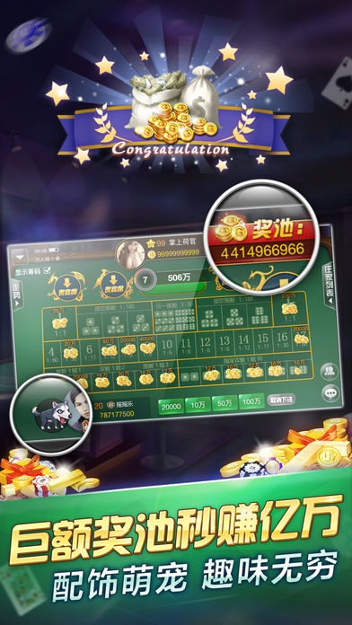 《骰宝摇摇乐》俗称骰宝、骰子,又称大小,是利用中国传统游戏摇骰子买大小所发展出来的一种博奕游戏。《骰宝摇摇乐》玩法简单、规则易懂,是一种既比胆略又比智慧的游戏,不同心理因素之间的较量成为了本游戏的一大特色。 【游戏特色】 1.游戏规则简单,玩法接地气,画面古色古韵,品质一流; 2.万人在线,五大场次同时开放,人气爆棚; 3.真人玩牌,可以送道具、发表情,还有其他互动新玩法,花样多; 4.顶尖防作弊技术,历史牌局追踪,游戏环境公平公正; 5.免费金币注册送,玩牌送,登录送,连续登录再送,各种送,爽到根本停不下来; 6.顶级声优配音,打造绝妙视听享受,让你的游戏体验很不一样。 【特别声明】 在游戏《骰宝摇摇乐》中,所有竞赛及抽奖活动与 Apple Inc. 无关,最终解释权归 骰宝摇摇乐 所有。