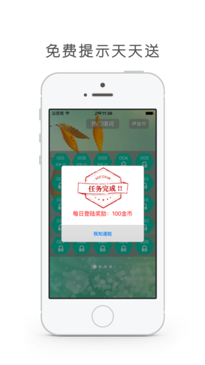 精彩填字 是利用空闲时间开发智力、拓展知识面的一款手机游戏,你可以自力更生独自完成题目,也可以和家人一起分享游戏的乐趣,还可以向朋友求助困难的问题,一起合作不断过关! 在闲暇的时候,消磨时间的同时还可以不断增长自己的知识! 玩法介绍: 1.通过给出的文字提示,写出词语。词语可能是成语、人名、普通词语。 2.完成率达到80%即可过关,并且开启下一关。 3.每天打开APP免费赠送答题提示。 4.和朋友一起,集思广益更好玩,更有成就感。
