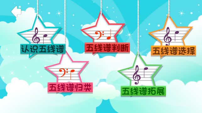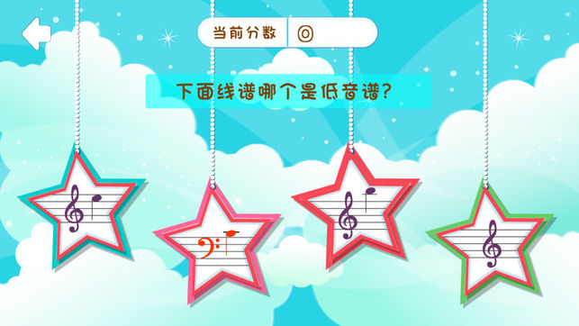 这是一款音乐五线谱教学游戏,主要目的是让同学们认识并了解低音谱和高音谱,了解低音谱和高音谱在五线谱上的符号,通过“认识”,“判断”,“选择”,“分类”,“拓展”五大游戏模块,轻松掌握高音谱和低音谱,认识五线谱。
