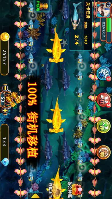 1. 2017游戏厅最火爆捕鱼游戏戏,华丽登场。 2. 真实100%还原街机捕鱼、千炮捕鱼、金蟾捕鱼等所有街机捕鱼版本。 3. 真实还原浪漫捕鱼,唯美画面,真人搞笑配音提升趣味性。 4. 疯狂有一网打尽、大三元、大四喜、同类炸弹,双鱼炸弹等经典玩法 5. 加入疯狂,海量金币每天免费领取,尽享千炮捕鱼的乐趣。 6. 每天都可以领取免费金币,让你彻底体验街机捕鱼的刺激。 ======================================================================== 【游戏特色】 【创新玩法,酷炫技能,酸爽无与伦比】炮弹无限反弹,定屏、狂暴、急速、锁定等技能,轻松愉快的背景音乐及诙谐幽默的鱼类配音 带给你不一样的捕鱼乐趣! 【华丽炮台,精美画面,让你爱不释手】华丽炮台,黄金龙炮,闯关冒险,让你体验不一样的刺激