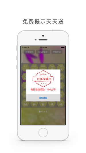 精彩成语填字 是利用空闲时间拓展成语知识面的一款手机游戏,共有100个关卡,1000多个成语,你可以可以向朋友求助困难的问题,一起合作不断过关! 玩法介绍: 1.通过给出的文字提示,写出成语。 2.完成率达到80%即可过关,并且开启下一关。 3.每天打开APP免费赠送答题提示。 4.和朋友一起,集思广益更好玩,更有成就感。