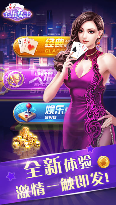 【全压女王】 是一款休闲类棋牌游戏,规则简单有趣极易上手,加之其娱乐性极强的特点,受广大棋牌爱好者的青睐。现在不管你是新手,还是资深的棋牌大师都需要考验胆略和智慧,外加上一点小运气。 推陈出新的玩法才能俘获玩家的心,游戏保留标准的玩法外,还新增了“淘金场”、“万人场”、“娱乐场”,在此都能体验一把尔虞我诈的刺激快感,下一个赌神就是你! 【游戏特色】 1. 经典模式:传统经典玩法比拼运气和智慧 2. 火拼模式:一掷千金豪赌爽,无限投注欢乐多,体验过山车般的刺激 3. 娱乐模式:玩累了可以来这里休闲娱乐 4. 时时彩:买的多,赢得多,一夜暴富成就土豪不是梦想 5. 全免费:应用完全免费 6. 免费送:金币免费送,登录送、注册送、下载送、升级送、每日完成任务送、破产还送 7. 刷排名:实时更新玩家场内排名,谁是高富帅?谁是土豪?是你还是他? 8. 享画面:干净简洁的界面、方便舒适的操作体验 9. 玩游戏:容量小、流量省、不发热超省电低碳又环保