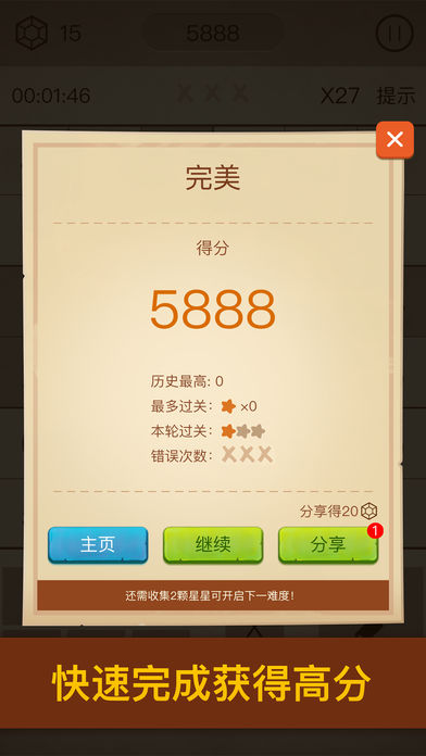 简单操作下的无穷乐趣! 多种难度可供选择,新增得分倍数玩法,快来获得高分吧! 玩家只需要将数字填入方格,完成数独获得五星级的体验! 在你游戏的同时同样锻炼脑力,绝对会让您欲罢不能! 赶快点击下载,一起来体验数字的魅力吧!