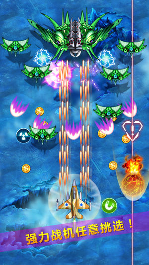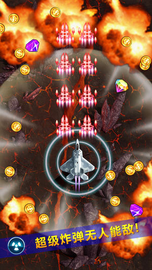 打飞机,一款经典单机打飞机游戏,还记得小时候街机电玩城的打飞机游戏吗,丰富的战机和boss,紧张刺激的游戏玩法,就在这里。 我们专注打飞机经典玩法,并且加入了一些创新元素。 **限免一周,F-22来袭** 惊喜: *中国区小伙伴下载后打开游戏即可领取“特大红包”一个,中奖率100%,速来领取。 *新增每日登陆奖励,金币道具送不停。 战机: 1.”闪电“: 初始攻击力为三级。 2.”雷霆“: 拥有原地复活逆天技能,一局最多可复活四次。 3.”苏-35“: 自动吸收掉落的道具,金币及宝石,让你全神贯注打飞机。 4.”F-16“: 拥有双倍火力,让敌人闻风丧胆。 5.“F-22": 空中霸主…