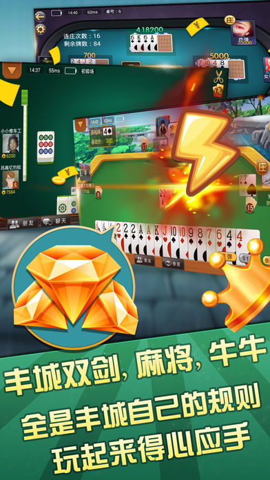 瓜瓜丰城棋牌,倾心打造丰城人自己的棋牌手游平台! 丰城麻将,丰城双剑,丰城牛牛,全是丰城人自己的规则,玩起来得心应手! 丰城本地人的社交平台,聊天游戏两不误! 丰城未来的娱乐风向标,结合本地商家,特惠活动享不停!