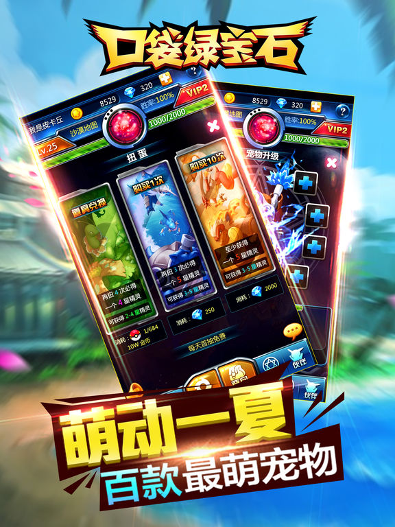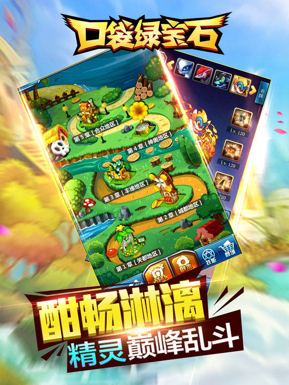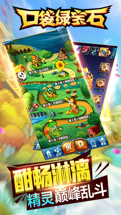 《口袋绿宝石》是一款操作简单,战斗绚丽,集卡牌、养成、策略为一体的手游,游戏除了抢星公会团战外,还有进化系统,夺宝系统,装备精练系统等特色玩法,更有大量碎片化时间玩法,让每个玩家既能感受到酣畅淋漓的战斗,也能沉浸于轻松休闲的萌宠养成计划。 全球首款Q萌2D角色扮演兼精灵收集养成手游;卖萌可爱的精灵, 精美绝伦的场景,酷炫的特效效果,在游戏中玩家扮演者精灵训练师。 玩家可以收集,训练,培养自己专属的精灵,并带他们战胜怪物,打败敌人, 游戏拥有五大系技能,特效狂拽酷炫,多种天赋培养,上百种精灵任意搭配, 还有游戏内容精彩不断,涵盖精灵收集,精灵养成,副本、竞技场PK等多类经典玩法, 更有全新独创的精灵进化,精灵装备以及合成三大特色系统,供你打造养成专属于你的宝贝。
