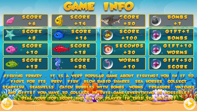 钓鱼小游戏 - 一个非常流行的游戏关于钓鱼!你在它的猎物,鱼打,炸毁狂热的鲨鱼和海马,收集星鱼和贝壳,捉气泡和炸弹,蠕虫,珍宝,钟表及礼品。你有这么多在这场比赛中收集和一切皆有可能!鱼用自己的方式顶端,并在这海战中的第一名!
