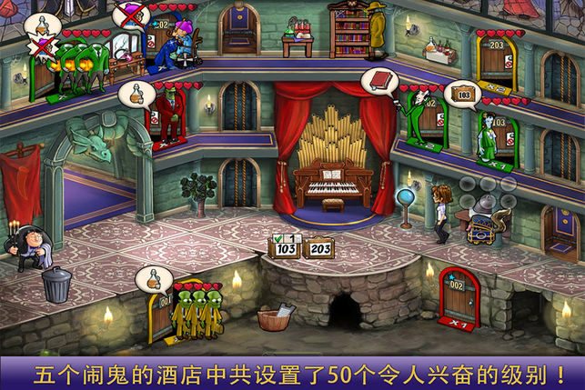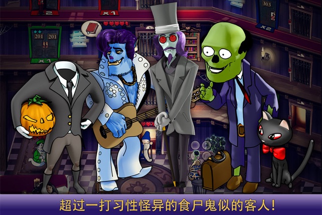 注意! 此版本可能与iPhone 7不兼容! ----------------------------------------- 为万圣节准备的精彩的iPhone游戏!作为一家闹鬼酒店的经理,您负责照顾当晚各个搞笑家伙的需要。设有50个令人忍俊不禁的时间管理乐趣级别,Haunted Domains (鬼域)将让您乐翻天! 指导Sheila Sullivan小姐办理客人的入住登记、晚餐供应、客房清洁和执行特殊任务,让食尸鬼似的客人们满意开心。购买可以让Sheila加快工作的魔力升级,装饰您的酒店以满足客人们令人毛骨悚然的品味需求,并在局面失控的时候争取Igor的帮助。最后,获得收益并恢复没落…