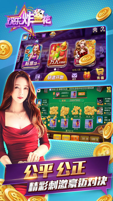 欢乐炸金花,2016年超受欢迎的万人炸金花! 【编辑推荐】欢乐炸金花,经典竞技扑克,等你来战 ◆◆◆◆◆◆◆真实真人,完美对战◆◆◆◆◆◆◆ ◆◆◆万人水果机、万人炸金花、万人老虎机◆◆◆ ◆◆◆疯狂炸金花、火拼炸金花、全民炸金花◆◆◆ 1.游戏同时在线达到2万人,真人对战,让你体验真正的高手对决! 2.游戏分为“经典炸金花场”、“千王炸金花场”及更加紧张刺激的“万人水果机场”! 3.30倍大7爆灯,明暗场对决,让你仿佛身临炸金花电玩城中,享受炸金花、水果机、老虎机等经典街机的无穷刺 激 作者:杭州炸金花地下工作室 感谢:北京朝阳炸金花团队,上海老虎机电玩城,成都炸金花大赢家娱乐城 欢乐炸金花客服唯一QQ:800186787
