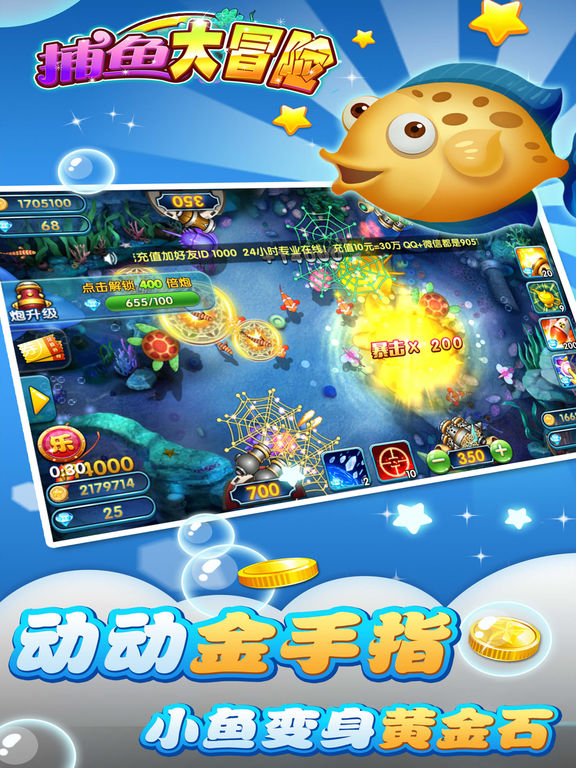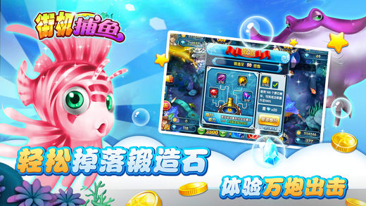 街机捕鱼是一款上手容易,丰富耐玩的真人联网同房间捕鱼游戏。丰富的画面效果、趣味性玩法及真实交友为“鱼友”们营造了一个生动的海底狩猎场。 特色玩法: 游戏设有多倍炮台竞技场、私人渔场、炮台锻造等热点玩法,无论你是与炮友比赛还是想独霸武林都能满足你! 每天送出大量话费,抢话费根本停不下来! 版本特色: 1:百万金币免费领,真正免费送你上千炮,贵族礼包各种神秘大礼等你拿 2:还担心抢不到BOSS拿不到钻石吗?私人渔场捕猎BOSS让你玩的更爽 3:千炮不够爽?万炮等你来,独特的锻造炮台功能让你打造强力炮台捕鱼所向披靡 4:是不是真正的捕鱼牛人排行榜见分晓,排行榜挑战鱼友刷新得分赢奖励