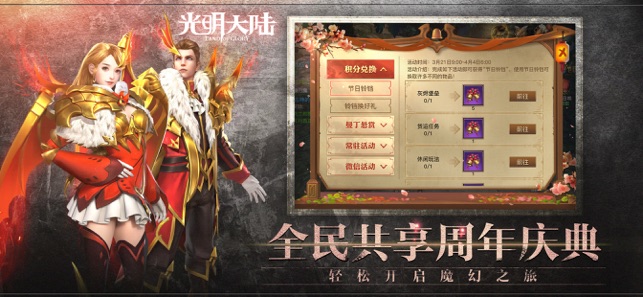 王者归来,光明不灭!《光明大陆》两周年资料片“王者归来”正式上线。三大职业黑暗游侠、混沌秘术、神恩骑士,都在龙眠荒野的灾难后荣耀归来,还获得了上古的神秘力量;全新翅膀系统“光明之翼”登场,闪耀的翅膀、自由的飞行,俯冲、滑翔等多段表现,将带来更自由的魔幻大世界体验;福利丰富的周年庆庆典开启,来玩就送价值1万现金福利的“勇士开荒计划”、全服红包雨、盛装舞会、玛瑟兰德知识竞赛等海量活动,将燃爆整个周年庆典。 《光明大陆》由网易游戏F工作室联合北美工作室倾力开发,并邀请好莱坞级视听团队挎刀参制的3D即时MMORPG魔幻史诗手游。游戏拥有360度自由视角,1296万平米超大世界和2K高清游戏分辨率,玩…