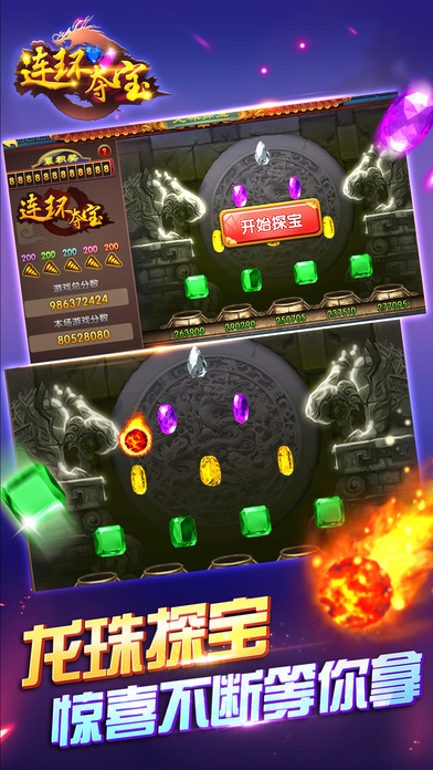 简介:百分之百还原经典街机连环夺宝,挑战最高奖励。 连环夺宝是风靡彩票投注站,即投即中的宝石连线消除游戏。100%街机还原,最高挑战累积奖。 玩法介绍: 1.游戏环节中,用户可自愿选择1-5个金刚钻进行游戏,每个金刚钻可使用游戏分数最低10分,最高5000分。 2.游戏总共有三关,三关分别在4×4、5×5、6×6的方形区域内掉落宝石,其中还包括一种特殊钻头。 3.系统在每一关随机掉落相应数量的宝石,如有符合游戏规则的宝石组合即可消除且可获得相对应的游戏分数,同时系统继续掉落宝石生成新的宝石组合,直到不再形成符合游戏规则的宝石组成。 4.在每一关累积消除15个钻头时,游戏自动进行下一关,第三关过关后游戏进行“龙珠探宝”。 5.游戏结束后,根据本场游戏所得游戏分数进入不同级别的中奖环节“龙珠探宝”获得最后分数。 用户若在一场游戏中途离开,可自主选择保留分数退出游戏,再次进入游戏时会继续未完成的游戏。
