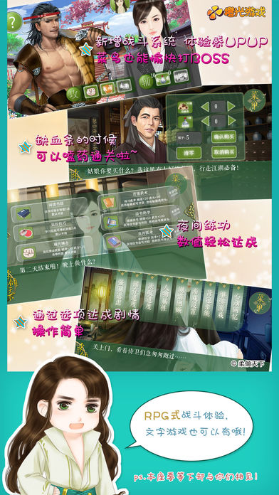 《柔倾天下(上部)》 豪华精装版隆重上市!请看【答疑区】以及【升级明细】 这是一款在网页端超过400万运行人次,将近100000点赞,80000收藏的热门古风原创恋爱养成游戏,数百万玩家见证了她的精美与精彩,好评如潮,您值得拥有一段完美的恋爱之旅。 【橙光游戏】&【花花游戏工作室】联手打造国产全正版原创古风乙女精品游戏! 【关键字:恋爱游戏 乙女游戏 角色扮演 古风 养成 文字游戏 RPG 恋爱 冒险 王爷 皇上 皇帝 特工 猪 】 【故事简介】 《柔倾天下(上部)》是一部非常精彩的角色扮演女性向多结局游戏。 你扮演一名拆弹技术人员,与搭档在执行任务的途中来至一架空世界,而英俊帅气的搭档变成了一只猪,令人啼笑皆非。你们在这个世界中相互帮扶,一起出生入死,建立了深厚的战友情谊,并一起战胜大坏蛋。故事风趣幽默,台词精炼,且充满了健康向上的正能量,友情与爱情齐飞,热血与感动并存,最重要的是剧情跌宕起伏,荡气回肠! 让我们带着一颗善良勇敢的心,与主角们一路走向最终的幸福吧! 【柔倾天下(上部)精装版升级明细】 1、新增穆天佑&穆天睿可攻略支线(又称皇佑线)15万字,包含4个正式结局。2个隐藏结局,配以大量精美原创剧情&结局CG。 2、孟星短结局升级为中线结局,并配以结局定制CG。 3、重写了庆王短线结局的HE和BE,大量精修了剧情。 4、新增了战斗系统、药品购买系统、练功系统。 5、新增了游戏CG鉴赏图鉴,可以反复欣赏打出来的浪漫场景哦。 6、进行了全面的正版素材的更换,大量优化了游戏的画面与流程。 包括新增150多个原创定制素材,40多张特殊场景以及原画CG。200多首正版音乐,1500多张正版背景,500多张人物表情、特写分镜。本游戏所有素材除了工作室独家定制的外,均来自橙光正版素材库。 7、更换了UI、宣传图、图片、新增片头以及下部预告 。 8、新增了结局通道,打出4个皇佑线结局后可开通所有结局通道。 在目录【结局通道】里面可以快捷进入。 9、新增了6个结局彩蛋,打出相应的结局后可开启。 10、增了游戏主题曲《战》,封面音乐就是主题曲啦。 【答疑区】 1、上部【旧版玩家】我是柔倾上部旧版玩家,能直接升级游戏吗? 答:因为咱们的游戏引擎进行了更新,独立包新的经典商城无法继承以前用户的存档与付费,咱们上部旧版将直接下架,豪华精装版将以新作形式另外发布,所以不能直接在旧版的基础上升级游戏。需要另外付费购买精装版,对此给广大玩家造成的不便,我们深表歉意。大家有什么想法可以来作者微博进行交流和沟通。作者大大萌萌哒,任由各位调戏。 2、上部【旧版玩家】我想保留柔倾上部旧版,该怎么办呢? 答:只要您原来手机上下载的游戏没有删除,旧版就会一直保留,要保留旧版的玩家千万记得别删!如果不小心删除了则需要到“已购买项目下载”,但和新版不相通。要注意两点:1.只限于曾经购买下载删除的。2、必须到已购项目里看到柔倾旧版本然后点击云+箭头这个小图标下载。 3、上部【新版玩家】我购买了,为什么没有花? 答:一般情况下购买对应的鲜花数后商城里便会立即显示鲜花数目,如果没有显示则是没有购买成功(虽然提示购买成功了,但是不会扣费),可以尝试再购买一次,一般情况下会成功。如果还未能解决可以联系我们的客户服务QQ:800066931 工作时间周一-周五。9:00-18:00 4、【新版】和【旧版】有什么不一样呢,我需要重新玩吗? 新版新增了很多内容哦,比如说新增皇佑线15万字,6个结局,十分精彩哟,主线方面逻辑也有重大修改,相关剧情进行了大幅度修整,替换了大量素材,新增了较多新功能,详情请见【升级明细】,最好是能够重新玩一下,以免剧情和下部连接不上。 5、【新版】为什么收费增加了? 新版收费30朵花58万字,并不是简单意义上的修正BUG,而是进行了全面的系统升级,游戏体验的升级,包括增加了大量原创定制素材推进了全正版工作的完成,私人定制规模较大的素材更换从游戏中各位应该体会得出来,精修了大量原版剧情(约10万),优化了游戏流程,并新增了大量新的剧情(约15万),剧情丰满,内容众多,满满都是诚意。 6、【怒发冲冠】柔倾下部什么时候出?都等了一年啦! 答:(晃动小尾巴)各位客官,请息怒!预计2016年下半年,我们已经十万分努力在制作了,下部有很多很多精彩的结局,很多很多美腻的原创CG哦。敬请期待。 【制作组】 授权与发行:橙光游戏中心(欢迎访问我们的网站www.66rpg.com) 制作:花花游戏工作室(橙光ID:花瑟) 新浪微博:@花瑟_花花大人 贴吧:穿越之柔倾天下吧 (需要攻略的可去贴吧搜索) 客服QQ:800066931 (人多可能需要排队,请耐心等待哦。) 【本游戏系列有】 《柔倾天下(上部)》 您现在体验的是精装版上部。 《柔倾天下(下部)》 《柔倾天下(庆王别篇)》 《柔倾天下(宣传片)》 【游戏精评】 玩家Minnnnna- 柔者,温文如波,润物无声。倾者,卓尔不群,一绝凡尘。天下者,胸中丘壑,诡谲莫幻。能够坐拥这样的搭配,怕是只有,也只能有这个《柔倾天下》了。 今天Mina君真心向各位小伙伴安利这个游戏,首先自己是一个很看重颜值的人,柔倾很对胃口。其次,对于剧情的走向,转圜曲折在我眼里再好不过,太短太极 速的游戏自然有自己的好处,但是我喜欢羽翼丰满,枝繁叶茂的游戏,而柔倾极是。以下分成数点进行安利,不过局限于个人的喜好,大家仁者见仁,智者见智。 【 画