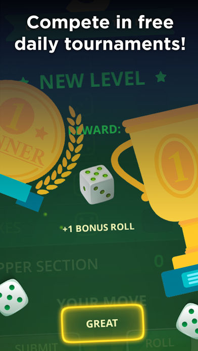 All users get +40 Bonus Rolls and no ads! Try Yatzy US - the most addictive Yatzy dice game ever! Join us and take on thousands of players online! You can play with friends, family, or random opponents - whether they're sitting next to you or thousands of miles away, playing dice has never been more exciting! ===Key Highlights=== • Exciting classic multiplayer Yatzy gameplay. • Combos similar to poker (three of a kind, four of a kind, straight) • Challenge friends and family. • Find thousands of random opponents over the Internet. • Tournaments with big prizes: 4 types of tournaments! • Play blitz games for chips! • Single Player - when you achieve your goal, you earn winnings! • Activate a bonus roll to get an extra boost right when you need it. • Personal profile with statistics – both for you and your friends! • Chat for meeting people and talking to them!