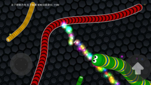 曾获得AppStore精品游戏推荐!(益智类) 贪吃蛇实时大作战玩法很简单,怎么击杀别人: 刚出来都是很小的一条小蛇,那么小蛇如何才能快速成长呢?那就是以小博大,击杀大蛇,然后吃掉他,这样比吃小点要快速很多。 那么如何用小蛇去击杀大蛇么?贪吃蛇对战版游戏玩法是不论蛇的大小,只要碰到其他蛇的身体就算死亡,身体分解成大圆点可以被其他蛇吃掉,这里小伙伴们只要控制好方向,找一条较大的蛇,一定要看准它的头部,然后趁机截住他,(屏幕右边有一个加速按钮,这里就看小伙伴们的预判意识了)让他去碰到你的身体,然后吃掉他! 小蛇慢慢成长为大蛇后,这里就又更好玩的方法了!没错,那就是围杀: 如何围杀其他蛇呢?当自己慢慢变成大蛇后,身体都很长,只有不停的在地图里绕,当你返回去的时候或许已经有几只被困在你身体围城的圈里死掉。 还有一种方法就是身体一直处于半弧形行走方式,想吃掉哪条蛇那就在他附近找机会绕圈,把他绕进圈里,不过为了防止被小蛇击杀,小伙伴可以在圈里横插过去,缩小她的活动范围,这样他就能更快的击杀他并吃掉他了。 只要足够大,那么想围杀谁就可以围杀谁,一切都是那么轻松,赶快下载试试吧。