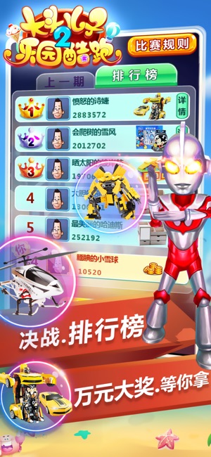 - 《大头儿子和小头爸爸》CCTV官方授权,传神还原动画! - 两亿观众群,两代人的童年。我们用心来创造的温情童话。 - 高分赢奖品,下载领红包!寓教于乐学英语,开心领奖全不误! 草长莺飞三月天,大头带你去探险!这个春天大头儿子一家将邀你一同去乐园春游!神秘的乐园不仅埋藏着许多神秘宝箱,还有无数红包等你去发现!赶快穿上新服装,去体验身临其境的春日场景吧!但要小心暗处的邪恶大魔王哦,他们的野心从未停止,战胜他们,守卫我们的美好家园! 千万小伙伴都在乐跑世界玩耍哦!加入我们! —— 游戏亮点 —— 【多变场景】弯道分层旋转又跳跃,快乐酷跑上天又入海! 【亲子游戏】…