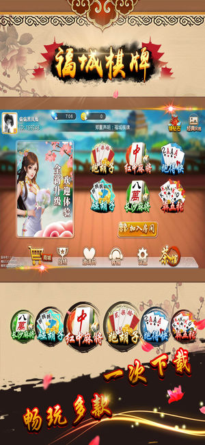 福城棋牌是2016年上线的湖南最热门的线上约局棋牌游戏合集,内含红中麻将、跑胡子、跑得快、犇五张、长沙麻将、转转麻将,采用线上创建房间的方式将线下麻将馆搬到手机上,解决凑局难的问题 --亲朋好友约局神器,从此不再三缺一-- ---湖南本地特色玩法 家乡特色配音--- --- 游戏特色 --- 1、好友对战:无需等待,线上随时开战,对局结果一目了然 2、自定玩法:各种选项任意定制 满足各种玩法需求 3、家乡语音:正宗本地配音,游戏倍感亲切 4、同IP提示、GPS定位双重防作弊 游戏公平无外挂 --- 联系方式 --- 客服微信:czmj001