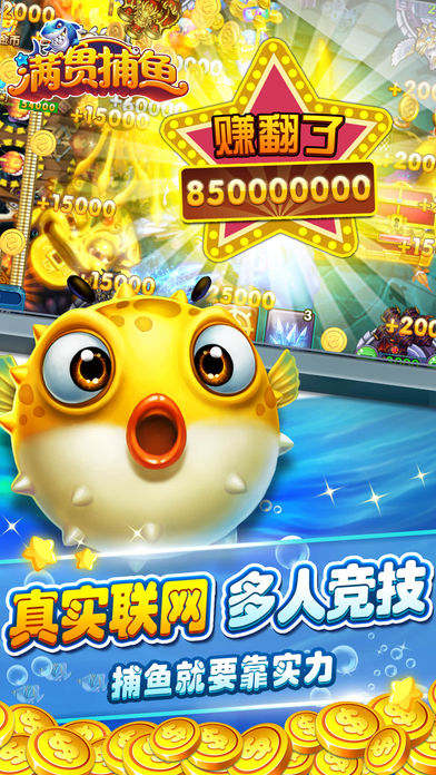 【内容提要】 全球最好玩的捕鱼游戏,玩上就放不下了!2017年爆款街机捕鱼游戏—满贯捕鱼!这是一款拼眼力、拼智商、拼指尖操控的游戏。精美的画面,流畅的操作系统,极致的用户体验,惊险刺激的游戏感受,让你爽到根本停不下来! 【游戏特色】 1、金币钻石免费拿,福利停不下来! 2、最刺激竞技赛,超级炮弹任你赢! 3、选座房加密,打造专属私人空间! 4、万人同时在线,联网竞技凭实力! 5、超震撼游戏画面,犹如身临其境!