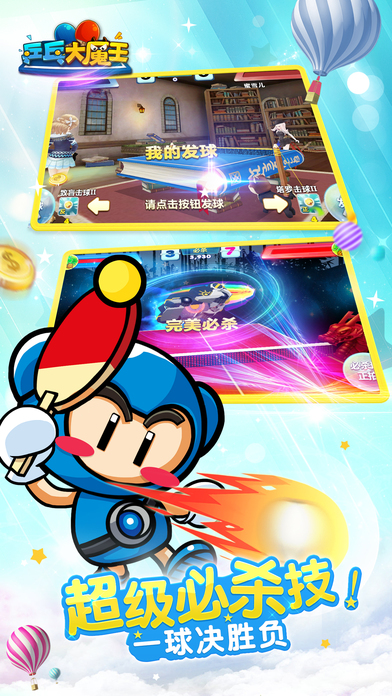【游戏介绍】 《乒乓大魔王》是韩国Bridea Smart公司开发的休闲体育类国民手游。 该作品以中国“国球”乒乓球为核心玩法,具备实时对战的竞技性,也兼具了休闲操作的娱乐精神, 游戏还适用了中国玩家熟悉的休闲RPG成长模式,并添加了剧情挑战等多种模式玩法。 Nexon14年经典游戏形象,宝宝皮蛋回来了,N社这一波童年的泡泡回忆我要续! 泡泡系列第四弹来啦!宝宝皮蛋陪你玩转乒乓世界! 14年前,它是令人魂牵梦萦的海盗船鏖战…… 11年前,它是至今仍然风靡全球的《跑跑卡丁车》…… 6年前,它是扛起武器向前冲的泡泡战士们…… 此时此刻,它是承载国球精神,娱乐至上的《乒乓大魔王》! 泡泡系列,从不是一个游戏,它是童年,是友情,是回忆,是青春! 【游戏特色】 13年经典游戏形象,跑跑卡丁车兄弟手游 实时PK,球技比拼,原汁原味的乒乓对战 挑战巅峰赛事 ,横扫大满贯,化身大魔王 超级必杀技引爆全场,挑战中日韩最强高手 搜集千种猎奇球拍,玩不厌的Avatar换装 【联系我们】 乒乓大魔王官网地址:http://pp.tiancity.com/ 乒乓大魔王微信公众号:pingpangdmw 乒乓大魔王官方QQ群:570182795