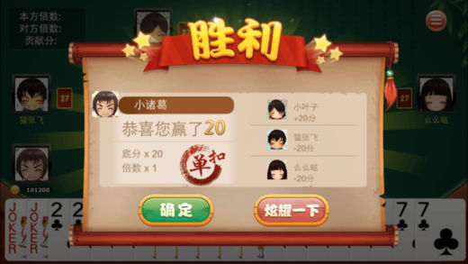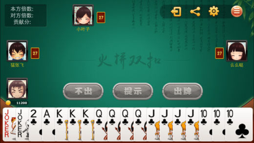 双扣游戏主要流行于浙江,是由温州人发明的。双扣规则类似跑得快。双扣游戏打两副牌,对家两人为一队。一队的两人要相互配合尽快将手中的牌先出完。 新版双扣特色: 1、单机绿色,随开随玩,让你摆脱一定要联网的束缚及断网掉线带来的烦恼 2、多种模式选择,千变玩法、火拼玩法都到碗里来 3、智能升级AI,毫不逊色的真人PK,不联网也能得到极富挑战性的单机游戏体验 4、酷炫动画,在界面简洁大方的基础上加入了各种牌型的酷炫动画