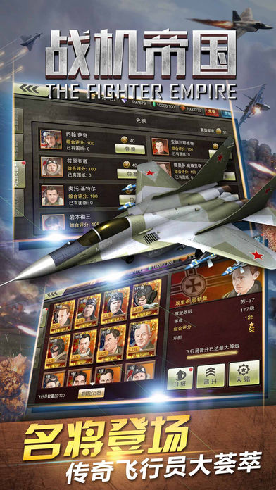 简介 《战机帝国》采用Unity 3D引擎打造,忠实还原全球传奇战机,打造空战视觉盛宴,充分满足战机收集欲望。同时,多维度养成计划、专属战机私人订制、合作军团竞技交互等乐趣十足的策略玩法也将带给玩家全新的空战手游体验! 【电影级画面 打造空战视觉盛宴】 《战机帝国》的电影级画面质感极大加强了战斗临场感,战机技能特效华丽炫酷,让玩家在游戏同时可以观赏到一场场紧张刺激的空战视觉盛宴。 【忠实还原 荟萃全球传奇战机】 《战机帝国》采用最新Unity 3D引擎,使用全3D高精建模及先进模型处理技术,忠实还原全球传奇战机,支持360°全景自由旋转,随时体验指间战机展览。 【打造强化 专属战队即将称霸世界】 精英训练、配件大师、军团合作、后备支援… 策略玩法助力打造专属最强战队,不断磨练成为最强指挥官称霸世界。 【名将登场 全球传奇飞行员由你指挥】 全球传奇飞行员内悉数登场,将为战机加成独具个性的战斗属性。传奇飞行员由你指挥,谱写属于你的空战帝国史诗。