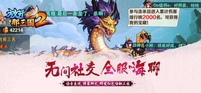 《放开那三国2》霸气金将逆天降临,众主公各显神威,看谁可以傲视群雄。最丰富好玩的版本,已向主公们揭开帷幕:霸气金将、逆天神器、破笼神兽、奇谋锦囊、咆哮红宠,超有趣的玩法,领不完的福利,带你感受前所未有的激情。三国世界风起云涌,还不赶快呼朋唤友,共攀乱世之巅! 冠绝三国,不负王名。《放开那三国2》放不开的手机游戏。 【特色一】炫Q画风 武将重现 一眸一笑拔剑咆哮 个性武将跃然在手 【特色二】激斗剿匪 指尖暴走 痛殴恶匪拳拳到肉 肆意连击暴打不停 【特色三】碎屏特效 极爽狂斗 腾空连击超必杀 一气呵成特效碎屏 【特色四】无间社交 全服嗨聊 语音聊天、弹幕留言、群发红包嗨翻三国 三国典藏级…