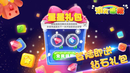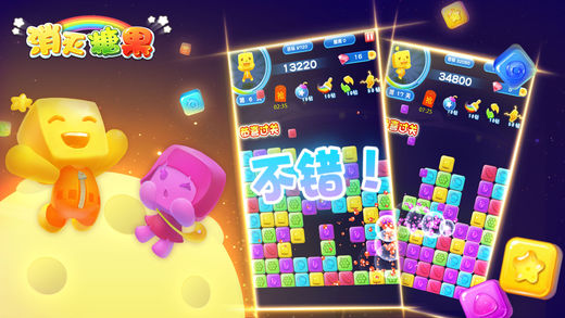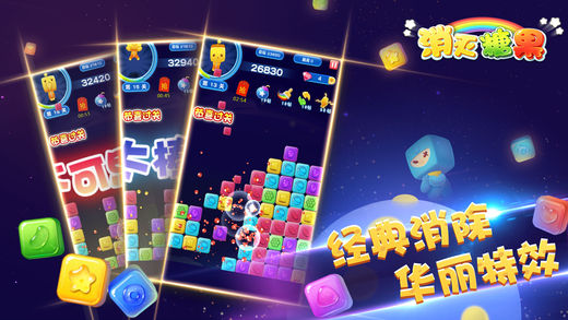 史上玩法最丰富的消除手游,欢乐无限,惊喜不断,无需流量玩一天也不会腻!资深消除玩家举双手双脚推荐的欢乐休闲神作,想快乐就是那么简单!玩法简单,内容丰富,消灭糖果,消灭方块,逆天消消乐。爱休闲爱消除,爱消灭糖果星星,马上一起来消除吧! 游戏玩法:vimedia.cn 【经典模式 消灭糖果】 点点点,消消消,轻轻一点,消灭糖果,快乐就是那么简单,根本停不下来好么?萌趣消除,百玩不厌! 【六角模式 经典升级】 最具创意的消除棋盘,最好玩的方块消除体验,这样的惊喜有多久没碰到了? 【拖动模式 回味经典】 经典的俄罗斯方块玩法,但又有一些不一样,经典与创新结合,欢乐超乎想象。 【方块模式 极限休闲】 大概是休闲游戏中最休闲的玩法了,但欢乐不打折扣,玩到天亮有木有! 想玩最好玩的休闲消除游戏,就马上开始消灭糖果星星吧!