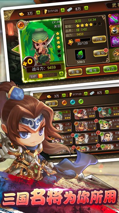 最萌3D卡牌动作冒险手游《三国志乱斗》火热上线! 时空崩坏,开创三国与日本战国武将混战传奇,更有超神格斗等你来参与! 【超搞怪穿越剧情,绝对笑出腹肌】 赵云带著阿斗跑路,遭遇日本战国的魔化武将袭击。 三国与日本战国武将大杂烩,究竟会发生怎样的故事?等你来看! 【超爽大战Boss】 纯3D打造Boss魔化幻变! 战国武将魔化重生,变态大招等你挑战。Boss就要够大,给你虐BOSS超强快感。 【百变关卡,陷阱重重】 关卡玩法百变多样,陷阱让你措手不及。打个宝箱还会中毒??黑人问号... “拒绝无聊刷本,还你惊喜战斗”,让刷本变成乐趣,让战斗更接地气~ 【超酷骑战来袭】 幻想机甲BiuBiu炮轰! 木牛流马已成过去,由诸葛亮黄月英夫妇联手打造,2017最炫机甲荣登三国舞台~小至木制机器人,大至航空母舰,个个装备机枪火炮,与时俱进的装备,誓将战国侵略者杀个片甲不留! QQ交流群:367235026