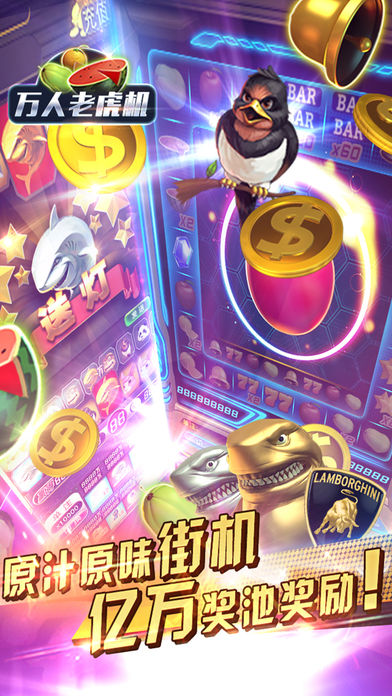 完美适配最新ios10.0系统! ◆◆◆◆◆◆经典街机老虎机100%完美移植◆◆◆◆◆◆◆ ◆◆◆水果机、大风车、大转盘◆◆◆ ◆◆◆◆万人游乐场、万人水果777、真人水果街机◆◆◆◆ 【游戏特色】 万人同屏、真人对战、玩家上庄真人PK! 万人实时聊天,边聊边玩完全停不下来! 超多金币送不停,做任务就送数万金币! 老虎机,又名水果机、老虎机,是街机厅、电玩城的经典游戏机型。 经典街机老虎机的全新复刻,采用2017豪华时尚机型设计,精美机台配合炫彩灯光,加入百人同屏、玩家坐庄等创新玩法,以及超刺激的超级大风车玩法,给广大老虎机水果机玩家带来全新的豪华娱乐盛宴! 感谢:777老虎街机电玩城,水果机协会成员 老虎机客服QQ:800801901