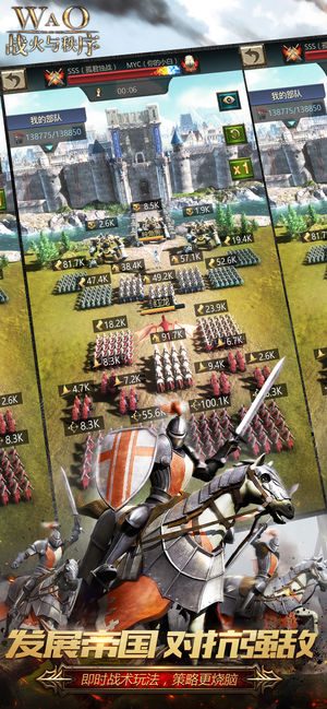 战火与秩序(War and Order)是一款集RTS与SLG 玩法于一身的即时战略手游。在这片残酷和希望并存的大陆上,每时每刻都在上演着史诗战役。在这里,你可以建造城堡,招募将士,划地为盟,厮杀掠夺,遇见来自全球各地的领主,跨越时间和地域的界限,争夺那至高无上的荣耀王冠。 这里没有信仰和神明,只有一触即发的战火和即将被创造的新秩序。 【纯正魔幻风 身临其境的绝美体验】 - 前所未有的3D极致画面,创造沉浸式的中世纪魔幻体验。 - 形态各异的神兽和30余种奇幻士兵已经集结完毕、蓄势待发,为您带来炫目震撼的史诗战役。 【全球玩家 无障碍协同战略】 - 全球同服,即时翻译。沟通无障碍,交流更…