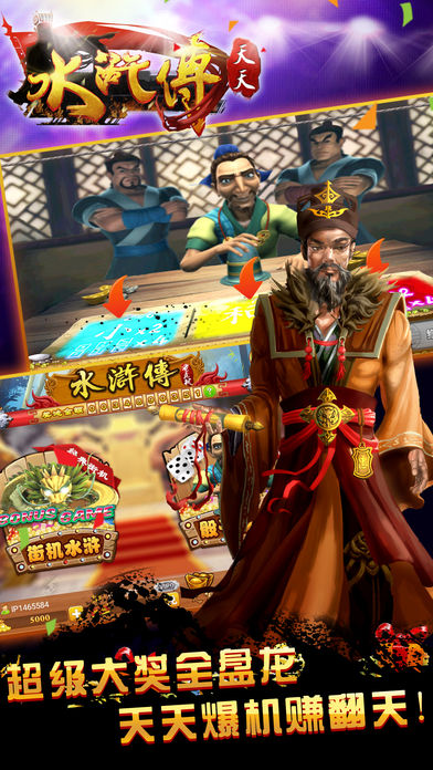 ■appstore最受欢迎的水浒传老虎机游戏隆重上线! ■全新玩法,亿万奖池,万人同时在线pk,超级大奖等你拿! 【游戏特色】 1.每日金币领到爆,全盘奖停不了! 2.万人在线共抢奖池大奖! 3.VIP坐拥多重特权,等级越高福利越多,高富帅就要VIP! 4.逼真的3D人物,古色古风的动画,最纯正的中国风! 5.不吃分合理概率,做最好的连线机! 6.无需注册,免费下载,立刻开玩。