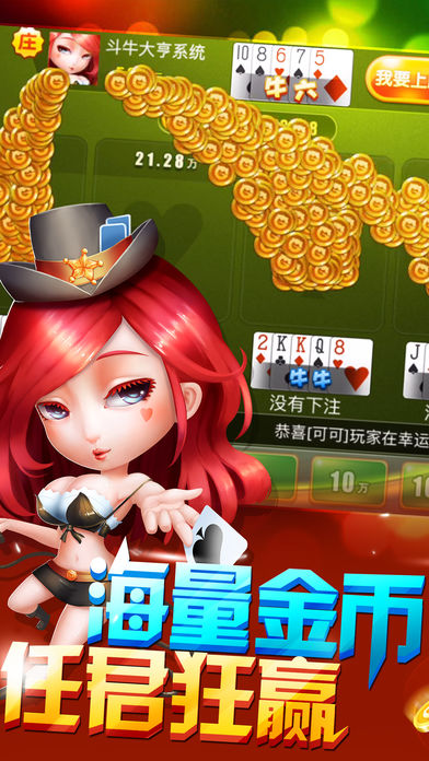 史上最疯狂的欢乐牛牛游戏,全民火拼赢三张的斗牛游戏乐趣,多种娱乐场玩法,疯狂炸金牛、加注抢庄玩法、百人牛牛,比斗地主掼蛋更富有挑战,红包任意领,经典的棋牌攻略,轻松一夜暴富的扑克牌游戏,快快加入吧! 游戏特色:注册送金币,多种活动金币送不停,真正一本万利的斗牛游戏酷炫丰富赢大奖,三分运气七分实力,丰富大奖等你赢。公平游戏玩法,不开黑防作弊,真正靠实力说话的游戏世界。多种玩法,随机庄家,抢庄模式,让你嗨不停! 客服电话: 4006-297-800 客服邮箱: cs@migame.cn