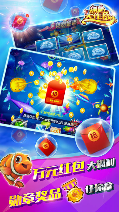 捕鱼大作战2017是一款多人联网实时对战的休闲类手机游戏,强调极易上手与欢乐流畅的游戏体验,通过梦幻深邃的海底场景、自然精致的鱼群刻画、华丽爽快的捕鱼画面、创意无限的玩法设计、诚意十足的各项活动,使玩家仿佛置身童年幻想中的游乐场中尽情娱乐。 玩家还将体验到惊心动魄的boss战、遐想无限的神秘卡牌、效果神奇的各类道具等,伴随跌宕起伏的心路历程,与新结识的好朋友在游戏营造的忘忧世界中并肩作战流连忘返。