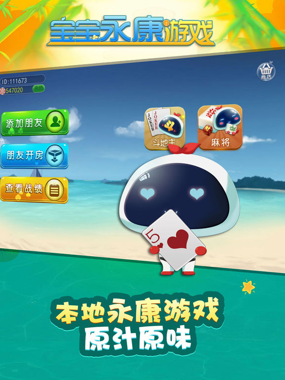 应用描述: 本地人都在一起玩的家乡味社交游戏平台。打牌、交友、约战,足不出户,动动手指就能分享快乐。 简单快捷的游戏体验,保护个人隐私。 无须注册,直接进入游戏,游戏内容100%免费开放。 真人玩家,实时互动,能交朋友的游戏。 地方比赛的游戏擂主云集在线,真人玩家,水平高超,牌友互动,鸡蛋鲜花满天飞。有牌打,有朋友交,更有朋友开房场,让您私家会所带身边,倍有面子。 多款游戏免费畅玩,总有你想玩的。 多款精品棋牌游戏合一起,总有你想玩的。 手机在线随时随地加入牌局,获得丰厚大奖。 联系我们 QQ交流群: 495545552 客服QQ:98742279