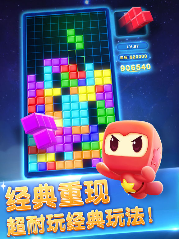 还记得在红白机和小霸王上玩俄罗斯方块的快乐么?最经典的俄罗斯方块玩法现在与你重新见面了!感受最开始的快乐!和更多朋友一起重温童年! 游戏特色: 1.经典俄罗斯方块玩法,最经典的方块形状 2.全新的优化的界面,视觉效果清新舒适 3.增加了提示与多种玩法,内容更丰富,游戏更轻松 4.随时随地,打开即玩