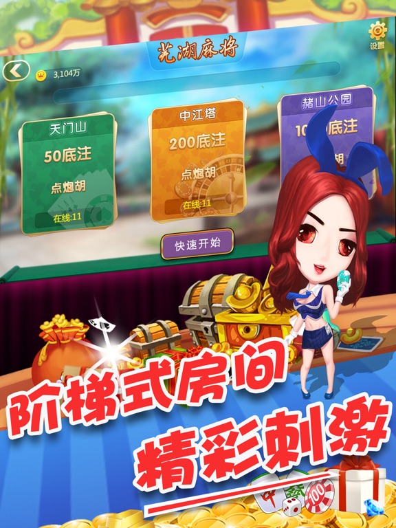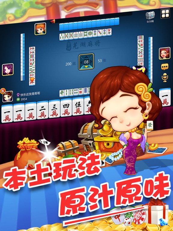 芜湖麻将是一款为芜湖人民量身定制的棋牌游戏大厅,集结了芜湖麻将,牛牛,芜湖斗地主等多款芜湖本地热门的棋牌游戏。 1、融入了安徽特色元素,特色棋牌室随身携带; 2、支持多终端多机型,让你畅玩无阻; 3、下载一个app,即可供选多款游戏,节约空间,净化桌面; 4、使用一个游戏账户即可畅玩大厅所有游戏; 5、支持LBS精准本地定位,为芜湖人民定制便捷趣味的线下活动。