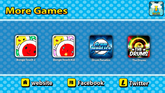 Bongo Touch is cute and challenge music rhythm game base on finger bongo drum style. There are 40 songs contented in the game. You will play the awesome music genre as Bossanova, Dance, Pop, Christmas, Rearrange, Kids and even Classical and Electronic by yourself or challenge other on Multiplay via Game Center. Main Features: 40 songs contented Redeem System Bongo Touch Shop Bongo drum costume 13 music difficulties Multiplayer Game Center Achievements Leader board Facebook share Please use headphone for the best drum sound experience. If you like Bongo Touch please kindly help review and vote us will drive us to make better game. Any technical problem game relate issue please send us email at support@jpnsoft.com. Visit our website for more information www.jpnsoft.com Facebook www.facebook.com/jpnsoft Twitter @jpnsoft