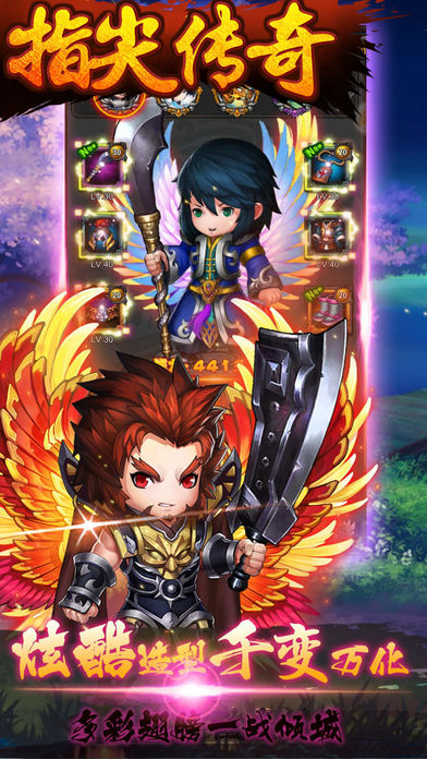 【游戏福利】 创角送送送,精彩活动连绵不绝,登录就送橙色宝宝!100000元宝等你来拿!7天登录双重大礼包,海量元宝、银币、神器、超级橙色元神妹子等你拿,更多福利,游戏中尽情体验。 【简介】 《指尖传奇》全新一代挂机·放置·休闲类手游,基于Unity3D引擎开发。自动打怪升级爆装备,离线奖励照拿,无需频繁在线,无需大量无聊操作,让游戏变得轻松起来! 超经典回忆:战·法·道带你回归那最原始的热血情义,带你重返那惊心动魄的战场厮杀! 超多创新玩法:元神培养、勇闯武神塔,组队闯龙城,全服打魔尊,更有世界BOSS时时来袭,实时激战沙城,勇夺第一血盟宝座。 个性搭配玩法:战甲战刃即换即变造型,更有炫酷翅膀点燃你的激情。 【游戏特色】 系统操作:操作简单,无需反复切换,一键即可培养到底。 休闲模式:没有复杂的操作,轻松游戏享受超多玩法,累了就退出游戏,离线状态下也会不停打怪升级爆装,游戏收益丝 毫不影响,这就是《指尖传奇》创新的离线休闲模式。 战斗系统:炫酷无比的技能特效,千变万化的技能效果,让你体验排兵布阵带来的战场纵横。 BOSS系统:世界BOSS每天降临屠龙世界,谁才是最强输出勇者? 魔尊系统:强势魔尊定期入侵世界,所有勇士能否协力击败魔尊获得无上奖励? 多人互动:血盟争霸,加入血盟为了兄弟为了家族而战,个人PVP,世界boss、届时神秘龙城也将开启。 -更多内容请立即下载《指尖传奇》体验!
