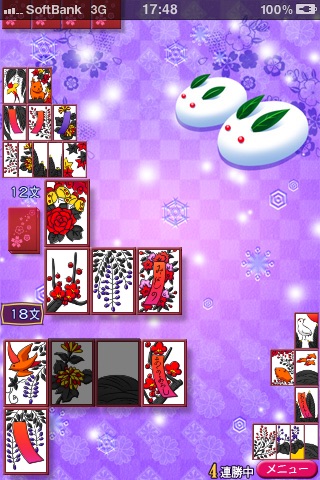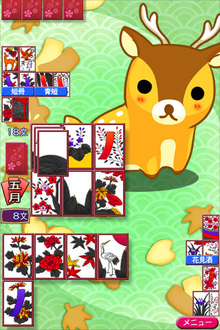 キャラやルールが豊富な「花札しよっ!」に新キャラ追加!(Ver.1.9.0) ガールズモードではスワンマニアの新作「デリコス」より「リリー」が参戦します。 アニマルモードはキュートな「わらびー」が参戦! ーーーーーーーーーーーーーーーーーーーーーー ※レビューにてメモリーの少ない機種で落ちるとの報告を頂いております件は調査中です。 なお、iPhone 3GS/iPhone 4では正常に動作することを確認しております。 ーーーーーーーーーーーーーーーーーーーーーー ・ルールなどの設定は20項目! ・iSWANのアプリ「大富豪しよっ!」でおなじみの3つの画面モード(スキン)も搭載しています。 ・キャラはアニマルモード6匹、ガールズモード6人から選べます。 ・アナウンスボイス有ります。 ・iPhone用花札初の縦画面でプレイできます。 ・iPhone 4のRetinaディスプレイに対応しました。 【 ゲームの特徴 】 ◯ルール12項目+オプション8項目もある、豊富なルール設定!! 地方のルールに合わせてゲームが可能です。 ルール設定 ・三光(あり/なし) ・雨四光(あり/なし) ・猪鹿蝶(あり/なし) ・月見酒・花見酒(あり/なし) ・月見酒・花見酒の取得文数(3文/5文) ・七文以上倍付け(あり/なし) ・相手こいこい時倍付け(あり/なし) ・手四(あり/なし) ・くっつき(あり/なし) ・化け札(あり/なし) ・親の移行(勝者が親/交互に親) ・タネ・短冊の複合(追加取得文数あり/なし) オプション設定 ・選択補助機能(取れない札が暗くなります) ・手番のお知らせ(自分の番で効果音が鳴ります) ・システムボイス(アナウンスボイスのあり/なし) ・札の速さ(3段階) ・残り札の表示(あり/なし) ・時計表示(ステータスバー) タイトル画面左上のアイコンでも変更可能 ・使用する札(八八/オリジナル) ・音楽設定 音量設定・iPodとBGMの切り替え 起動画面の音楽選択画面をON/OFF ◯3種類のゲーム画面をいつでも切替えて遊べます ・シンプルモード:シンプルな画面で遊べます ・アニマルモード:可愛い動物キャラで遊べます ・ガールズモード:美少女キャラで遊べます ~電車などで美少女キャラでプレイしにくいと思ったときはシンプルモードにチェンジ!!~ ◯2種類のゲームモード ・フリー対戦 6ヶ月戦と12ヶ月戦で遊べます ・文数争奪戦 先に相手の文数を0にした方の勝ちになります。連勝するとコスチュームが・・・ ◯プレイがしやすい縦画面! iPhone用花札アプリでは今まで無かった縦画面でのプレイができます。電車の中などでちょっと空いた時間にプレイする時、気軽に取り出してプレイできます。 ◯片手操作を意識して、なるべく親指で操作できるように操作ボタンを配置しています。 ◯キャラによって打ち筋や強さが違います。 ◯イカサマやカードの分配操作はしていません。 ◯戦績が見れます。 ◯BGMとSEのボリューム調整可能 ◯iPodの曲とゲームBGMの切替え可能 ◯セーブは自動セーブです(自分の番になったときにセーブ) ◯iOS4のマルチタスクに対応 ※iOS3.x では動作しません。
