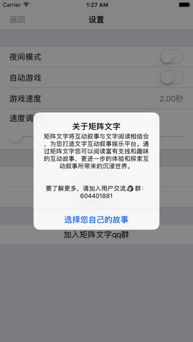 - *谜一样的赫敏*入驻矩阵 - *谜一样的赫敏*《三国礼宾部纪事》发布中 - 敬请期待 *谜一样的赫敏*新作《养成一只主公》 用户交流企鹅群:604401881 矩阵文字将互动叙事与文字阅读相结合,为您打造文字互动叙事娱乐平台。 通过矩阵文字您可以阅读富有支线和趣味的互动故事,更进一步的体验和探索互动叙事所带来的沉浸世界。 要了解更多,请点击下载并参与互动阅读,探索关于矩阵文字的一切。 矩阵文字为您提供如下功能: - 分支游戏 - 自动游戏 - 自动存档 - 夜间护眼 - 迷之剧情