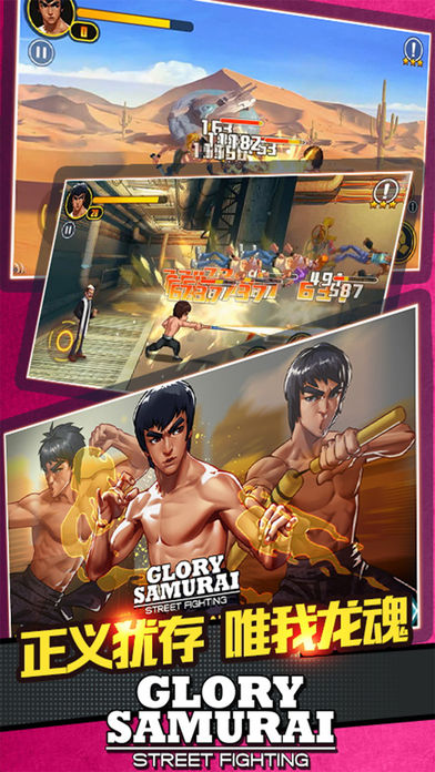 史诗级动作角色扮演游戏【李小龙 - 热血街霸格斗游戏】强势归来!在这款超酷的街机游戏中,无数致命的武器和炫酷的格斗技能正在等待你使用和自由组合。快来感受各种逼真的武术动画和超刺激的故事情节!你将不断与成群的敌人战斗,甚至还会遇到强有力的邪恶势力的首领。面对战斗力越来越强大的敌人,你该如何应对他们的攻击,这一切将由你自己来探索! 冲锋陷阵,力敌千钧,想成为这样的不败英雄吗?无论是风驰电掣的鬼魅战士,无人可挡的威力武士还是勇往直前不屈格斗者,你可以选择最适合你的战斗风格,然后勇敢投身于火热的战场!在这鲜血淋漓的战斗场上,用强大的功夫和酷炫的武器来征服所有站在你面前的敌人吧!来吧,为了权力和荣耀,打败邪恶的敌人,征服他们的领土,而后成为那片区域最终的统治者。“荣耀武士 - 罪恶街头之战”这款经典的战斗街机游戏现在正在安卓平台上提供免费下载,快来尽情享受极致的游戏体验吧! 无数的凶狠矫健的敌人不断围攻着你,而你需要做的就是突破重重难关斩杀所有的敌人。这是一场血雨腥风、惊魂动魄的2D高清娱乐盛宴——竞技场景壮丽宏大,格斗动作硬朗威猛,特效表现血腥刺激,内容趣味余音绕梁。在血拼肉搏中感受敌人因为残躯断肢而产生的撕心裂肺的高呼呐喊,在挥动武器的那一刹那,你的鲜血是否已经燃爆?只有战斗至死,没有半途投降!拿起你的武器来战斗,击败所有向你进攻的敌人,用他们的鲜血拼凑你的荣耀武士之路。置身于血污遍地的罪恶街头,挥动剑斧与身姿健硕的敌人们展开生死较量!仔细观察,灵巧闪躲,正确判断猛攻时机并迅速重创对手,使其血溅当场!体味智能机触屏对战格斗所带来的独特乐趣。狂风骤雨般的组合连击和必杀特技的发动是否能够都成功破解对手的一轮攻击,逆转局面,开始反击呢?上挑下斩,左撩右砍,通过不同方向的连贯手指滑屏即可发动华丽的连击!每一次有效斩击都可为必杀特技的发动积蓄能量。无需等待反击时刻,必杀特技随时发动!既可与连击组合战术搭配,也可薄击厚发、一击毙敌!想要成为荣耀的武士统治所有的敌人,就必须拿起你的武器和敌人进行战斗。完成各种有趣的任务,提高并强化武器技能,解锁各种华丽的成就。不管是刀、枪、剑、棍,你都可以装备起来和敌人对战。这是一款最刺激和令人兴奋的格斗游戏!拿起武器,使用各种华丽特殊的格斗技能,你的荣耀武士之路将由你自己来决定。 【李小龙 - 热血街霸格斗游戏】是一款2D战斗生存动作游戏,流畅的动画和优化的系统为你提供简单易上手的游戏体验。游戏中你可以装备各种致命的武器,感受逼真刺激的战斗动画效果!即使是战斗游戏新手玩家在也能轻松上手,释放各种超级技能,实现复杂人物动作。专为触摸屏设备而设计,将移动设备游戏的简洁直观性与硬派街机游戏的深度完美结合在一起,这款游戏能够让玩家直观感受格斗游戏酷炫体验。使用虚拟的操控杆和两个动作按钮,既可完成踢腿、拳击、跳跃、抱摔和等具有极高精准度的组合动作!自定义你游戏人物和解锁超级特殊武器,将进一步提高你的力量水平。想要成为什么样的武士,想要拥有什么样的故事,这一切都由你自己来决定。使用简单的命令就可以很容易地实现许多技能和招式的花式组合!手指点击屏幕滑动不受任何局限,无限奇妙的战斗技能组合将让你丰富体验战斗的每一分钟。 【李小龙 - 热血街霸格斗游戏】特点: - 战斗节奏紧张刺激,操作控制流畅自如,界面设计清晰明快,轻松上手百无禁忌! - 高级技能,抵挡恶魔入侵!磨练精进,激发所有潜力! - 有趣而又刺激的故事情节让你肾上腺素激增! - 直观的虚拟操纵杆上手简单,能够确保你攻击的精准性。 - 保持敏捷,随时和敌人斗智斗勇,计划你的进攻顺序和目标! - 逼真的虚拟游戏体验!使用拳打脚踢的功夫招式和酷炫的技能与敌人在街头对战! - 角色扮演游戏和动作游戏的完美接合令人沉浸其中! - 特殊酷炫的技能!精彩刺激的故事!逼真热血的战斗音乐! - 无需连接互联网,随时随地想战就战! 【李小龙 - 热血街霸格斗游戏】是一款经典的自由战斗街机游戏,给玩家震撼人心,身临其境般的极致游戏体验!这是一款极具魅力的2D街头拳击和格斗游戏,与其他同类型的游戏相比,快节奏的功夫战斗,华丽的游戏画面,武术和空手道的自由组合,逼真的视觉效果和游戏音效都能够给你更加完美的游戏体验!完美集合了动作游戏和角色扮演游戏的优点,我们希望这款2D动作格斗游戏能够给你身临其境的游戏体验和热血沸腾的游戏感受。