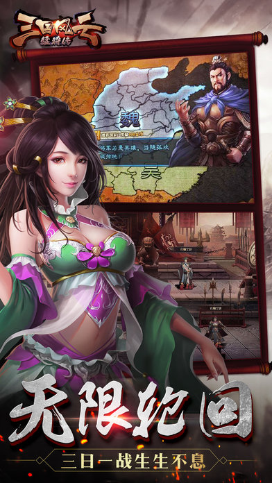 经典三国玩法,打造强力策略国战游戏。 全天无限制自由国战、击败帝国、收服名将、发展城池、真实还原三国历史、激情无限 【游戏特色】 ---经典三国热血战场--- 重返三国战场,率领千军万马,过关斩将! 火烧赤壁,怒恐长板坡,秋风五丈原,等你来战 ---独创特技,制作细致--- 历史名将,依次登场,需要你用武力征服他们。 游戏中武将分为不同的质量,质量越高,实力当然也越强。 ---热血国战 尔虞我诈--- 天下大势,三国鼎立 游戏分魏蜀吴三个国家阵营,一旦选择,终生不改。 组织你的军队、带领你的国民,向敌国进军吧,占领敌国领土,抢占敌国资源。 ---突破传统,不断创新--- 突破传统游戏接线,领悟非凡,并非单单数字能够表达或者简单动作来比拟,《三国风云猛将传》的战斗玩法将会是全新玩法,力求每一场战斗均给玩家带来真实重回古战场两军残酷对拼厮杀场景还远!
