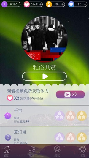 音乐游戏是目前最流行的休闲、娱乐、消磨时间的神器。 全新玩法,精美洁面,让你爱不释手。 游戏特色: 1.加入了当前最流行音乐(更多音乐持续添加中...) 2.流畅的游戏体验,绝佳的手感 3.长按的音乐游戏玩法和经典玩法结合,更刺激,更好玩 如果你喜欢玩音乐游戏,千万不要错过这款音乐快哦。 赶快来下载吧!