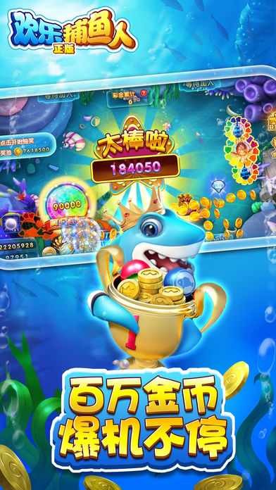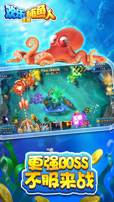 《欢乐捕鱼人-正版》 酷炫新炮台来袭,让你体验前所未有的超酷炫打鱼场景! 2017年四海八荒内最火的捕鱼游戏!让万千捕鱼老司机爱不释手的一款可偷分、可上下分的捕鱼手游! 1.联网竞技,捕鱼手游。真实同桌互动,万人同台捕鱼,你不再是一个人在战斗! 2.鱼人巢穴,组队玩法。四人副本,约小伙伴们一起去海底探险! 3.百万金币,爆机不停。新增彩金鱼玩法,金币累计由最终击杀玩家获得,摇身立马变土豪! 4.免费金币,拿到手软。新增红包玩法,土豪们一掷千金,红包、福袋抢个够,让金币不只有捕鱼才能获得! 5.更强boss,不服来战。新增小偷鱼玩法,抢钱玩法让游戏更刺激! 四海八荒内最好玩的捕鱼游戏,金币打完了?不存在的! 真正不一样的捕鱼,来玩就知道!