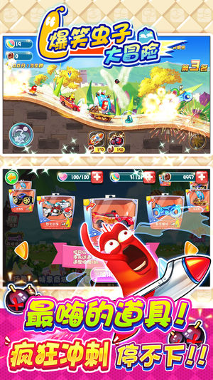 风靡全球的虫子游戏玩疯了,《爆笑虫子大冒险》正版跑酷游戏。这次虫子们争先恐后的要从下水道逃脱,创新的竞速对抗跑酷游戏,完全不同于天天跑酷,神庙逃亡类经典游戏,不甘寂寞的虫虫们现在面临生死存亡的一刻!打破传统全新定义跑酷,用道具击倒竞争者,用技能占得先机,为了胜利,你能有多疯狂呢….! 【创新对战跑酷】 不再是单调的跑跑跑!现在你还可以袭击你的对手:烟花、夹子、轮胎全都招呼上。节操神马的完全不重要,先跑到终点线的虫虫才有大份奖品哦!看到后面那只胖屎壳郎么,用小鞭炮炸翻他! 【爆笑虫子总动员】 忠于原著的角色,搞笑和耍贱的虫子们各个生怀绝技,有跳的高的小粉、跑得快的独角仙,还有小黄...嗯...小…