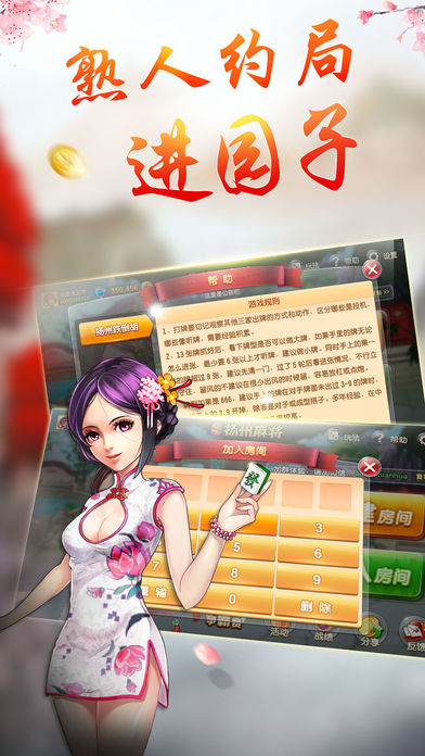 呱呱扬州麻将是以扬州地区流行的麻将规则为蓝本开发的一款地方麻将游戏。在游戏中完整的保留了扬州地方麻将游戏元素,使得扬州麻将更好玩,更真实。 游戏特色 1、随时随地,约上好友搭手搭手; 2、玩法纯正,紧淌园子应有尽有; 3、全无限制,圈数玩法随你来定; 4、支持LBS本地定位,为扬州人民定制便携趣味的线下活动; 5、人性化的社交系统,让亲朋好友没有距离的阻碍。随时随地共享休闲娱乐的美好时光。