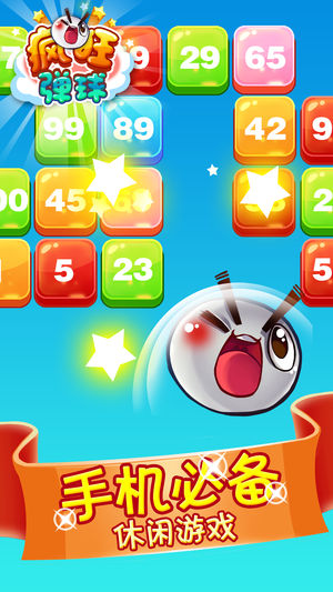 疯狂弹球-根本停不下来 【游戏介绍】 疯狂弹球,一款融合俄罗斯方块、打砖块和泡泡龙于一体的休闲小游戏,上班路上,等车时间,随时随地,你都可以拿出手机来挑战其他小伙伴,滑动你的手指,释放你的大脑,一起来疯狂弹球吧! 【游戏操作】 使用你获得的小球,击碎所有的方块,当方块落到底部,你将失败。释放小球的角度很重要,获得的小球越多,你能击碎的方块数量越多。 【联系我们】 客服QQ :3260295436 客服电话:13040674271 客服邮箱:service@topself.com.cn