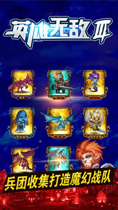 战棋巨作!策略之王! 《英雄无敌3》邀您一起勇闯惊险刺激的战棋旅程! 游戏传承了经典的PC单机游戏《英雄无敌3》的战斗模式,六边形经典网格,同时游戏创造性的将dota、LOL等众多知名英雄合理的融入到战棋玩法中,让游戏耳目一新,与众不同!游戏涵盖了卡牌收集、英雄养成、竞技pk、副本冒险、魔法技能收集、兵种收集等诸多玩法,游戏性极强,百玩不厌! 特色亮点: 1.最烧脑的回合制战斗 六边形经典网格,游戏传承了经典的PC单机游戏《英雄无敌3》的战斗模式,玩家的每一步操作和走位都可能决定最后的胜利走向。当玩家因为自己的操作使得自己的军队不费一兵一卒就可以歼灭敌方的“百万雄师”时,成就感与满足感会相当爆棚!当然,玩家也可以选择由系统来帮忙战斗的自动战斗模式。 2.最独特的成长模式 游戏中有策略游戏常见的城建系统,而游戏中的城建系统是跟兵种的能力相关的,在还原经典的同时,大幅增加游戏趣味。游戏里也有常见的多样化的成长途径,有趣不单调,如游戏中的魔法升级,除了增加魔法的数值外,还会伴随有其他更惊喜的效果附加。 3.最精美的游戏画面 游戏UI和角色采用了卡通风格,虽是魔幻题材,但卡通化后受众范围会略微扩大,主城各建筑场景分层处理,立体感很强,英雄兵种采用骨骼动画拼接,动作还原度高,各种特效都十分精美,且恰到好处,让玩家在游戏时感觉很舒服。 4.最大胆的游戏背景 我们将不同世界观的角色和背景结合,既有埃拉西亚的大天使、泰坦等士兵,又有夜魇和天辉军团的各种英雄,并且还将超神学院的各个英雄也融入其中,英雄和士兵的魔法相得益彰,配合得恰到好处,妙趣横生且丝毫不显突兀。 联系我们QQ:567205575