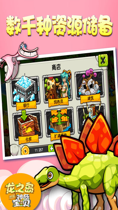 另类经营养成游戏《龙之岛:恐龙神奇宝贝》正式与大家见面! 游戏以原始恐龙时代为背景,玩家将以作为恐龙乐园管理员的身份出现。游戏中不知要对乐园的经营建设精打细算,更要认真研究培育对每一种恐龙,新颖独创的恐龙约会系统可以让不同品种恐龙间繁衍出新品种恐龙,这种自由开放式的玩法系统加深了游戏的趣味性和可玩性,如何能够培育出名贵稀有的恐龙成为贯穿游戏的核心!游戏画风清晰卡通,伴随着轻松愉快的背景音乐和可爱的恐龙形象,同时针对每种恐龙都有真实完善的科普说明,集娱乐轻松和寓教于乐于一体,喜欢恐龙吗?想养恐龙吗?快快登陆“龙之岛”吧! - 寓教于乐,在玩游戏的同时还能学到很多原始恐龙的知识 - 使用不同的建筑和装饰来创建独特的龙之岛家园 - 恐龙种类繁多,并且能够进行繁育,孵化出更多独特可爱的恐龙 - 可以造访好友的恐龙家园,看看谁的龙之岛更美丽